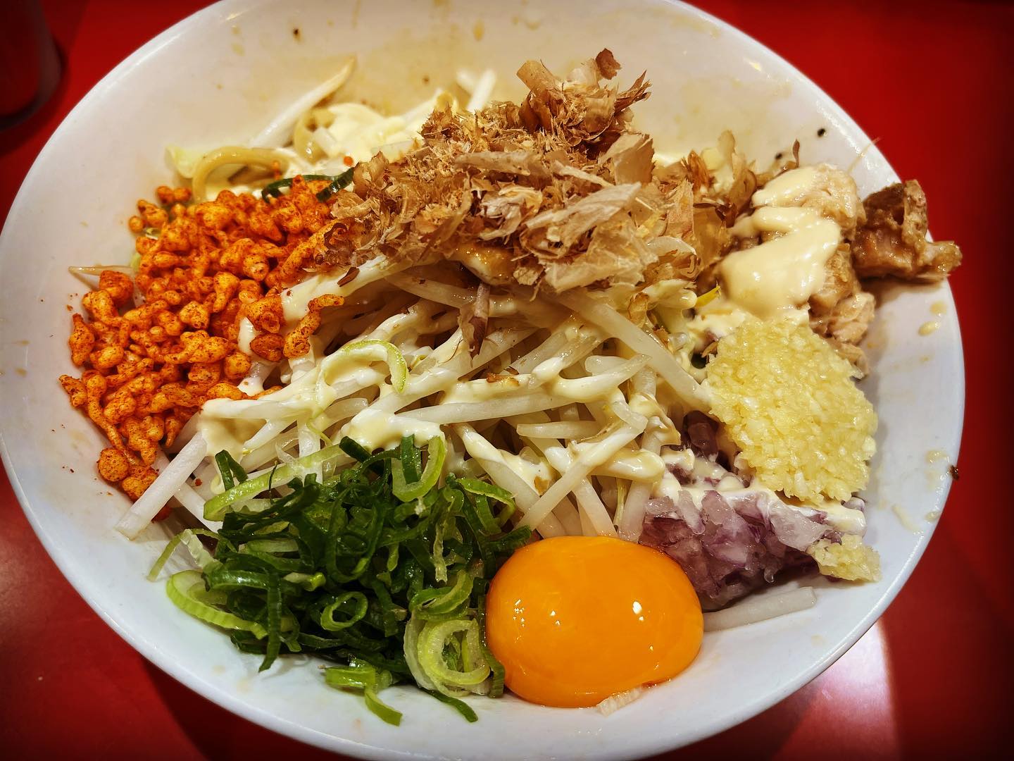 用心棒 市ヶ谷 まぜそば 野菜増し 黒脂W ガリマヨW...