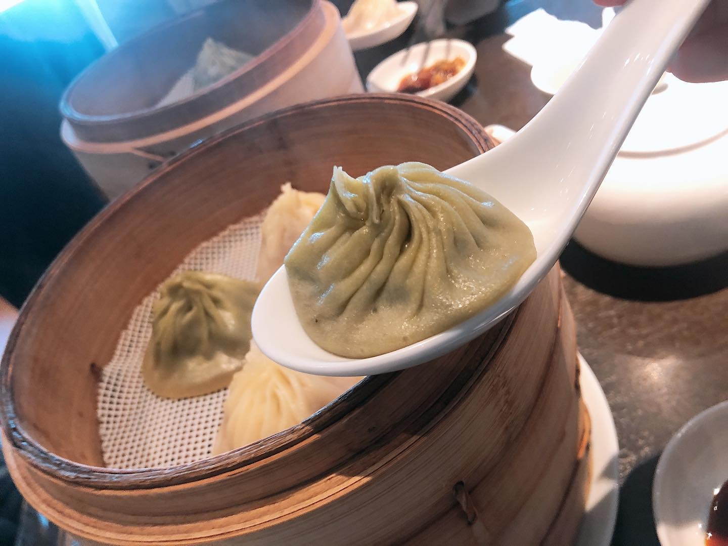 緑のは烏龍茶小籠包で、肉汁と共に烏龍茶の味がしました✨