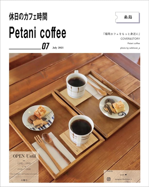 Petani coffeeは、ドリップコーヒー10種類の豆を選べるこだわりのカフェです。380円のレアチーズケーキは、上がレアチーズで下がスポンジ、コーヒーと相性抜群。駐車場有り、火曜定休。営業時間は平日12:00-19:00、土日祝は10:00-19:00です。