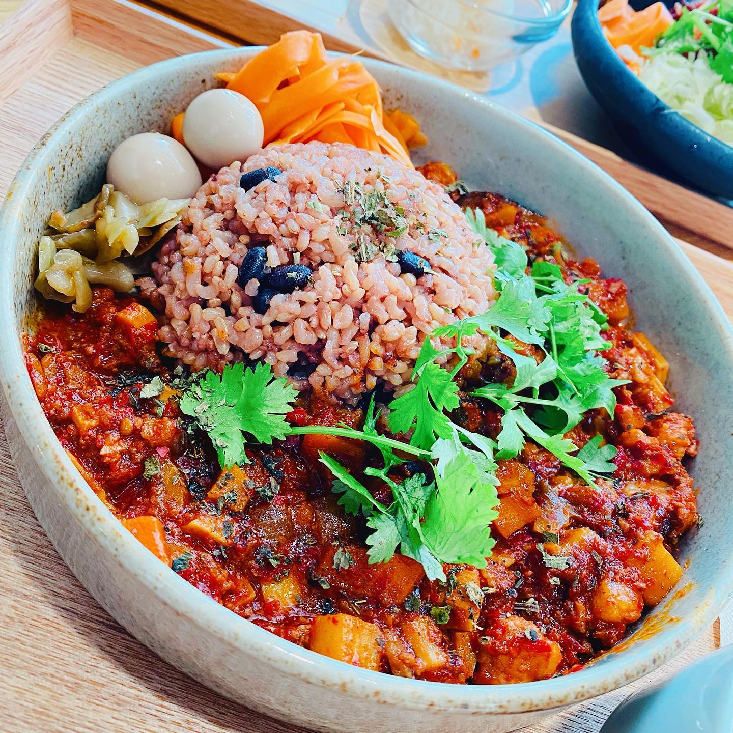 警固の薬膳キッチン copertaは、お洒落な空間で漢方薬剤師監修の漢方茶と薬膳が楽しめます。赤の麻辣火鍋と黒の美肌・代謝きのこスープ、ラム肉や薬膳唐揚げ、玄米ご飯など体に優しく満足感も高い一品が揃います。