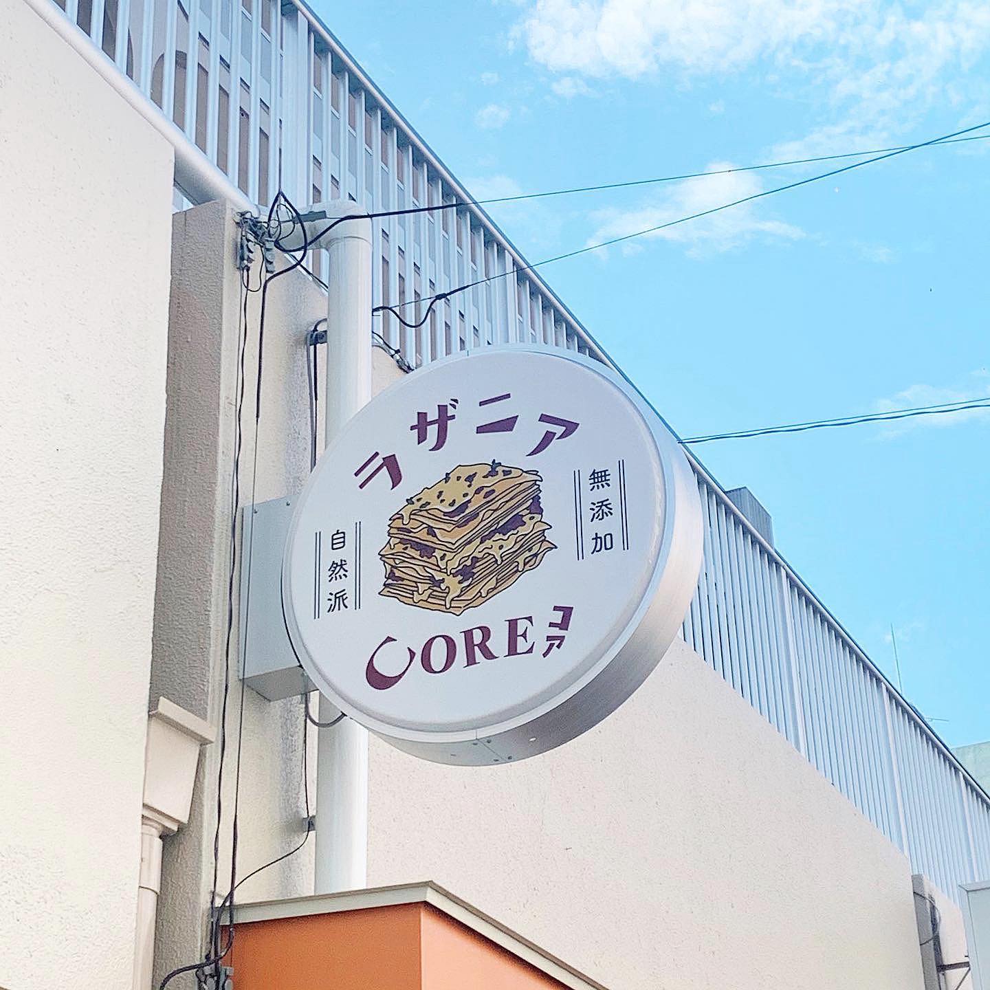 鳥飼にあるラザニア専門店・ラザニアCOREです。15層のラザニアと4種のソースを半分ずつ楽しめ、あか牛のミートソース・スモークマッシュルーム・アラビアータ・ブルーチーズの組み合わせが魅力。パンがサービスで付く点も特徴です。