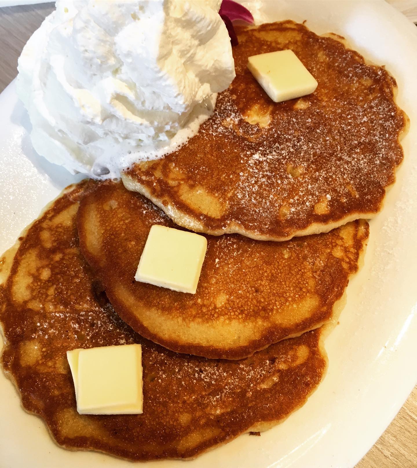 今流行りの分厚くてフワッフワの雲みたいやつじゃなく、パンケーキミックスで作るモチっとしてぺらっとし...