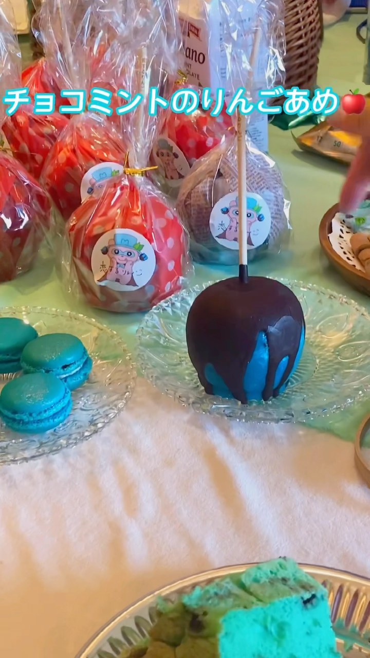 9月から発売される『恋するりんご』の、チョコミントりんごあめ (ミントレベル3ver)がめちゃうますぎた🥺🍎