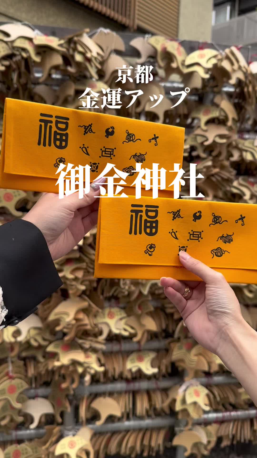 京都にある御金神社は金運アップのご利益で有名で金色の鳥居など黄金色に飾られた神社。