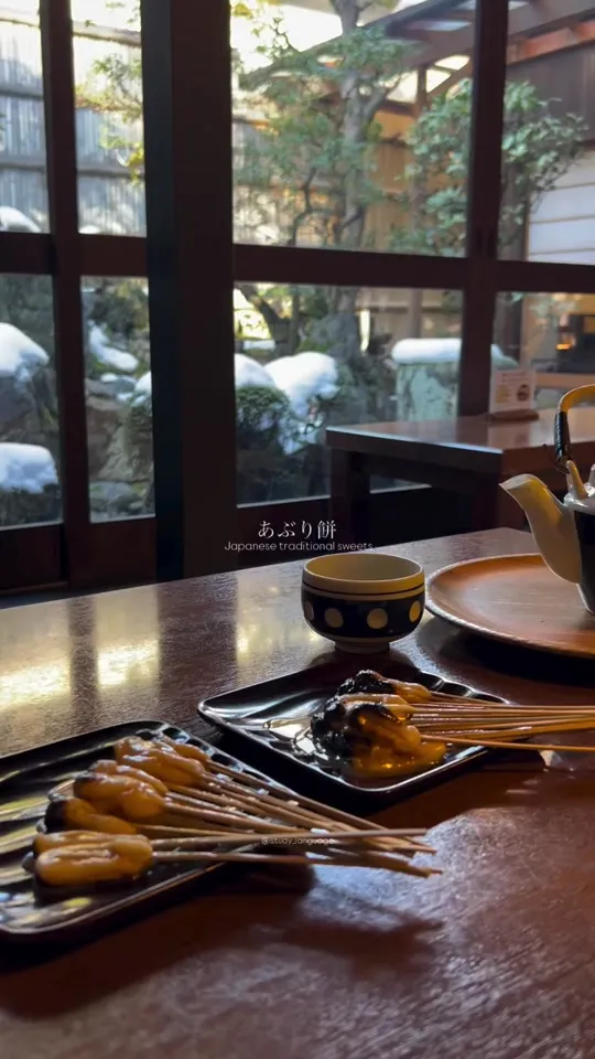 京都に2店舗しかないあぶり餅の専門店🍡 絶品あぶり餅とお茶のセットが600円でいただけます!京都に来たら絶対食べてみてね:)