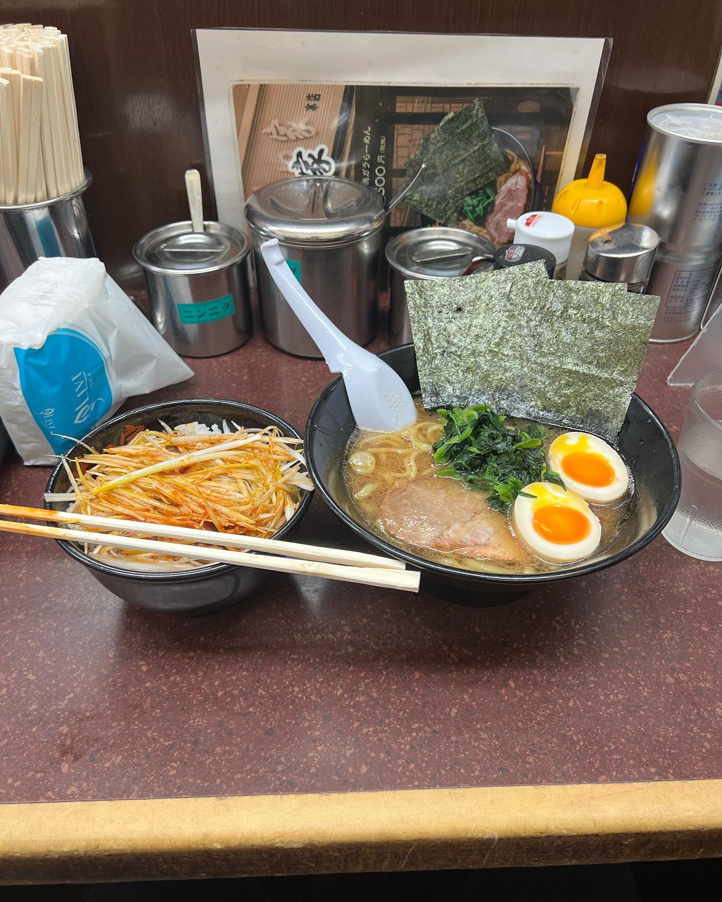 らーめん せい家 五反野店は、背脂たっぷりの家系ラーメンが自慢のお店です。卵ラーメンや味玉ラーメンなど、卵トッピングと薬味ネギ、ライスの組み合わせが楽しめます。
