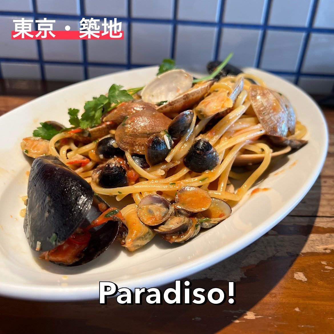築地にある「Trattoria Tsukiji Paradiso」というイタリアンのお店。貝たっぷりのペスカトーラは絶品なのでパスタが好きな人には特に食べて欲し...