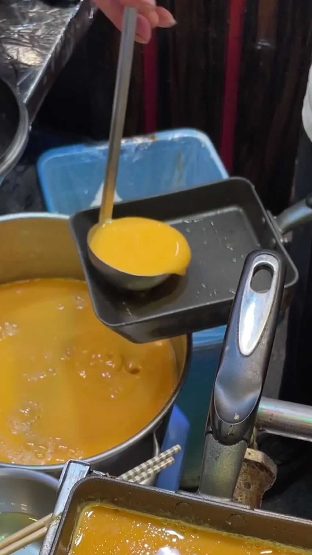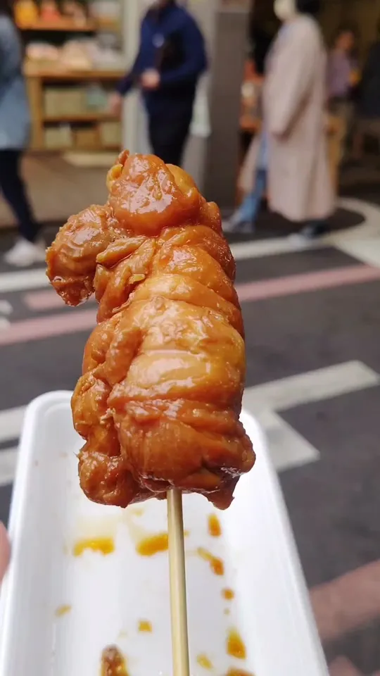 京都の錦市場で熱々ふわふわのだし巻き卵🐣...