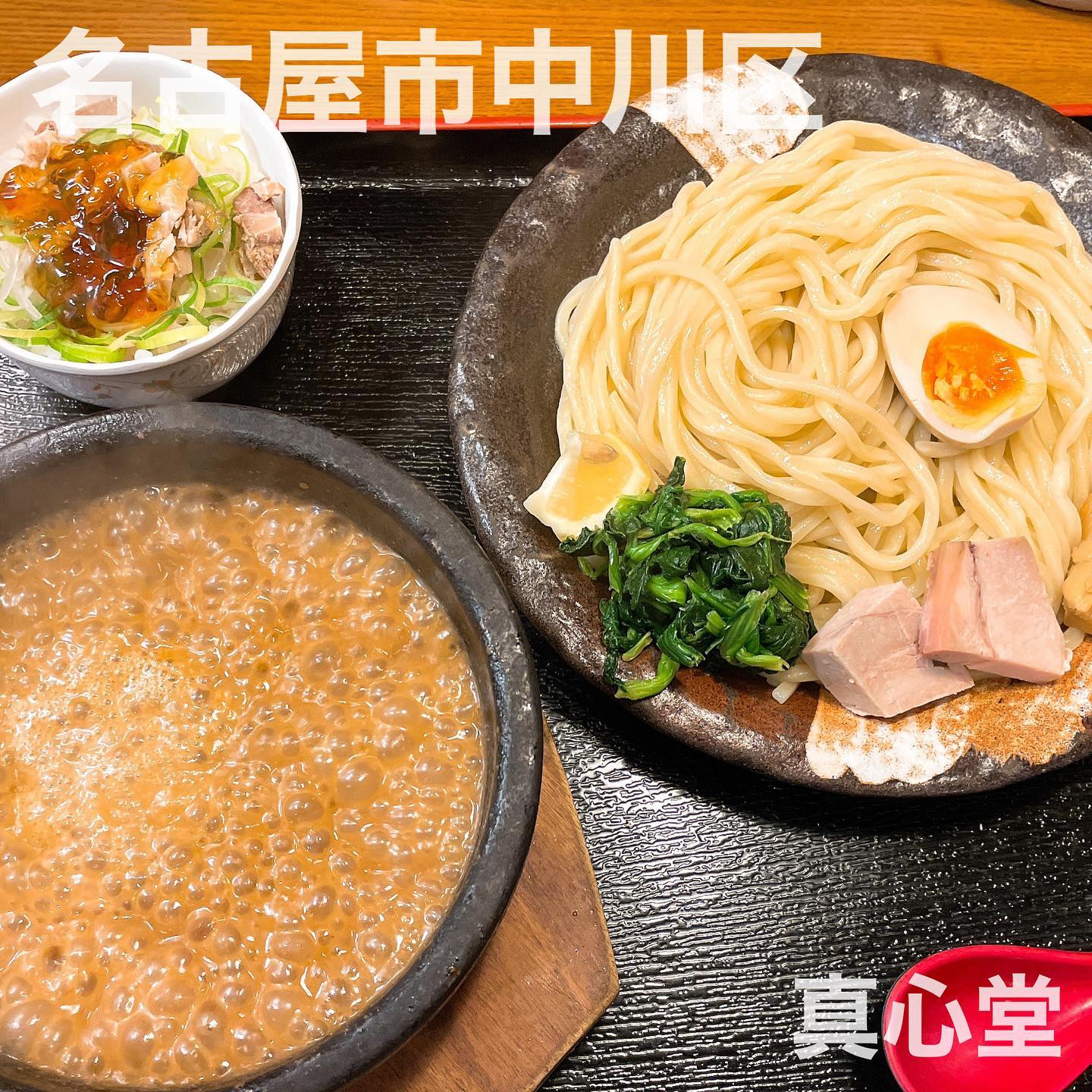 名古屋市中川区・真心堂は、一面を覆う巨大看板が目印。伊勢海老つけ麺が看板商品で、ぐつぐつ煮えるつけ汁と太麺の相性が抜群。平日限定のミニカツオ飯セットや、麺メニューも豊富。駐車場近隣の煮卵サービスも話題。海老好きにおすすめです。