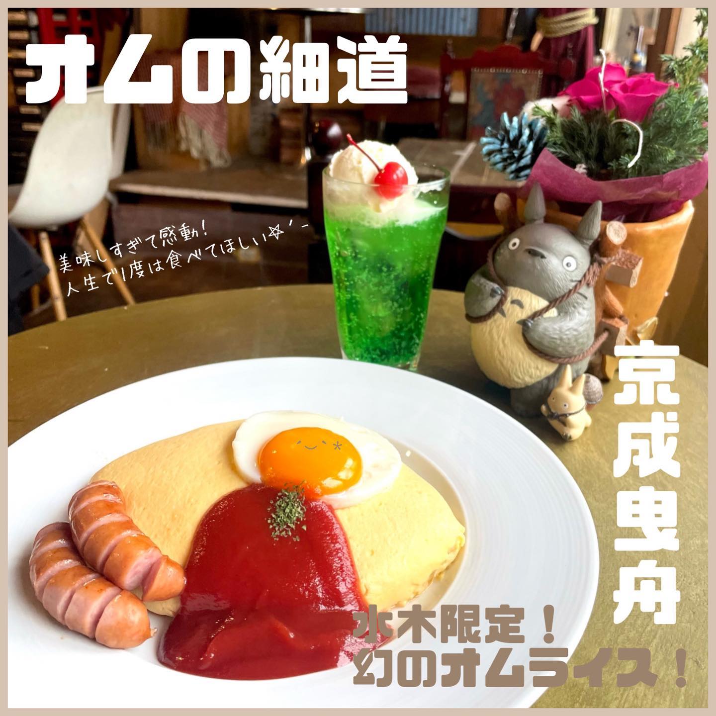 墨田区京島のオムの細道 ~京成曳舟~は、水木限定のふわとろオムライスとクリームソーダが人気です。ケチャップライスは玉ねぎ・ベーコン入りで、チーズとバターの香りが絶妙。セルフ式で、営業時間は水木11:30–16:00(L.O.15:30)です。