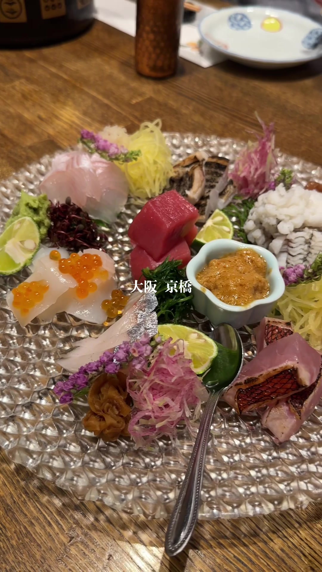 大阪・京橋の日本酒居酒屋『二刀流』は海鮮と和食が自慢。宝箱のような日本酒冷蔵庫と豊富な銘柄が魅力で、鮑・帆立・天使の海老など旬素材を活かした一品が揃います。デートにもおすすめです。