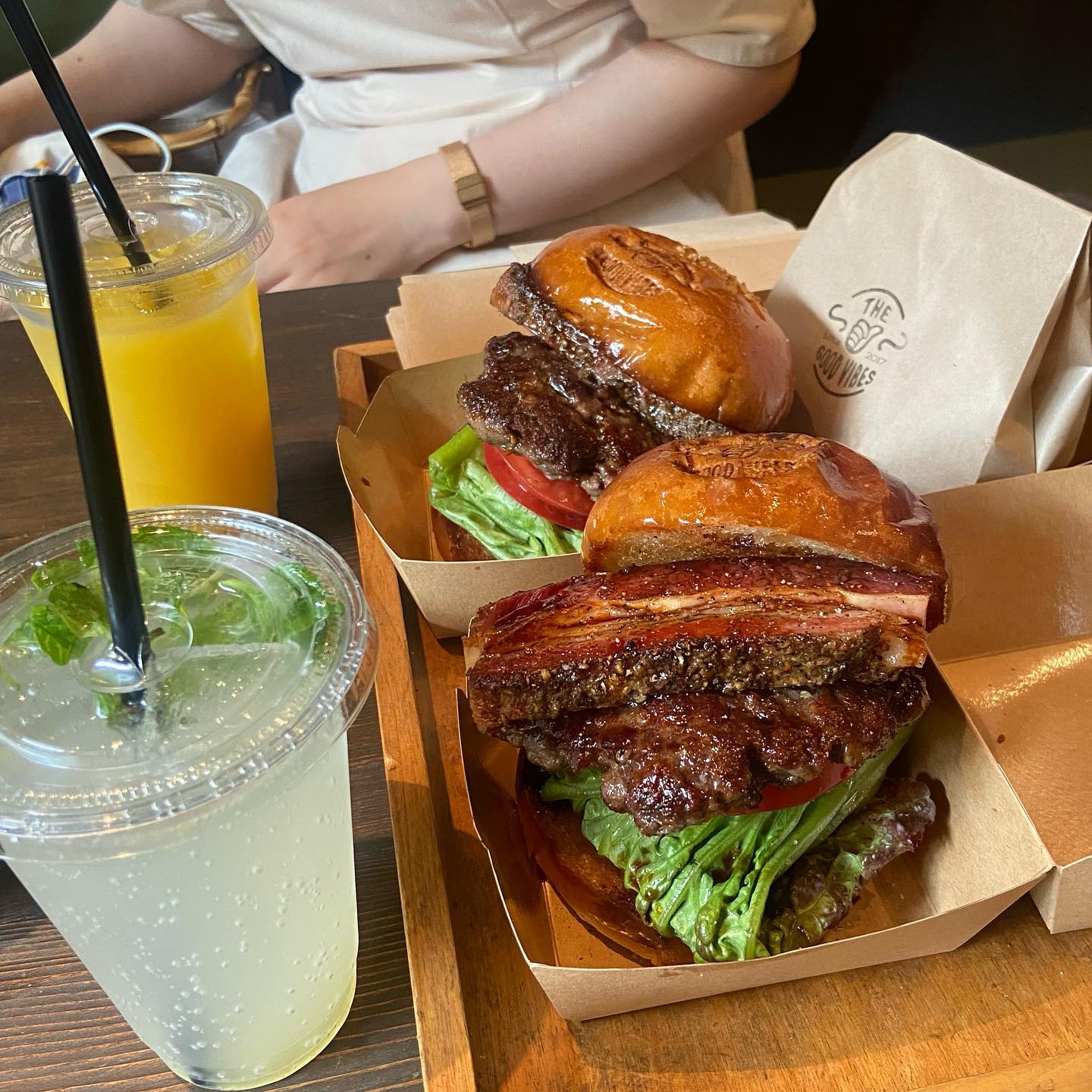 芝浦のThe Good Vibesは自家製パストラミが厚切りで柔らかく、サクふわバンズとオニオンリングが魅力。焼菓子のスコーンとクッキーが絶品。テラス席・ペット可。ミニバーガーセットも話題です。