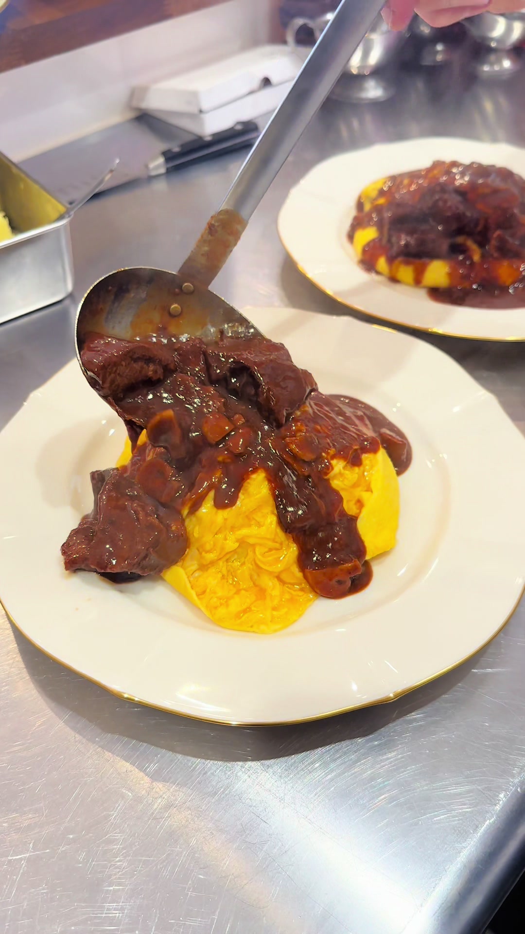 A5黒毛和牛の牛タンをゴロゴロ入れたオムライス!デミグラスの芳醇な香りがたまらない!学芸大学駅近くにある洋食ムチュっていうお店 #東京グルメ #japanfood #longervideos #tiktokfood