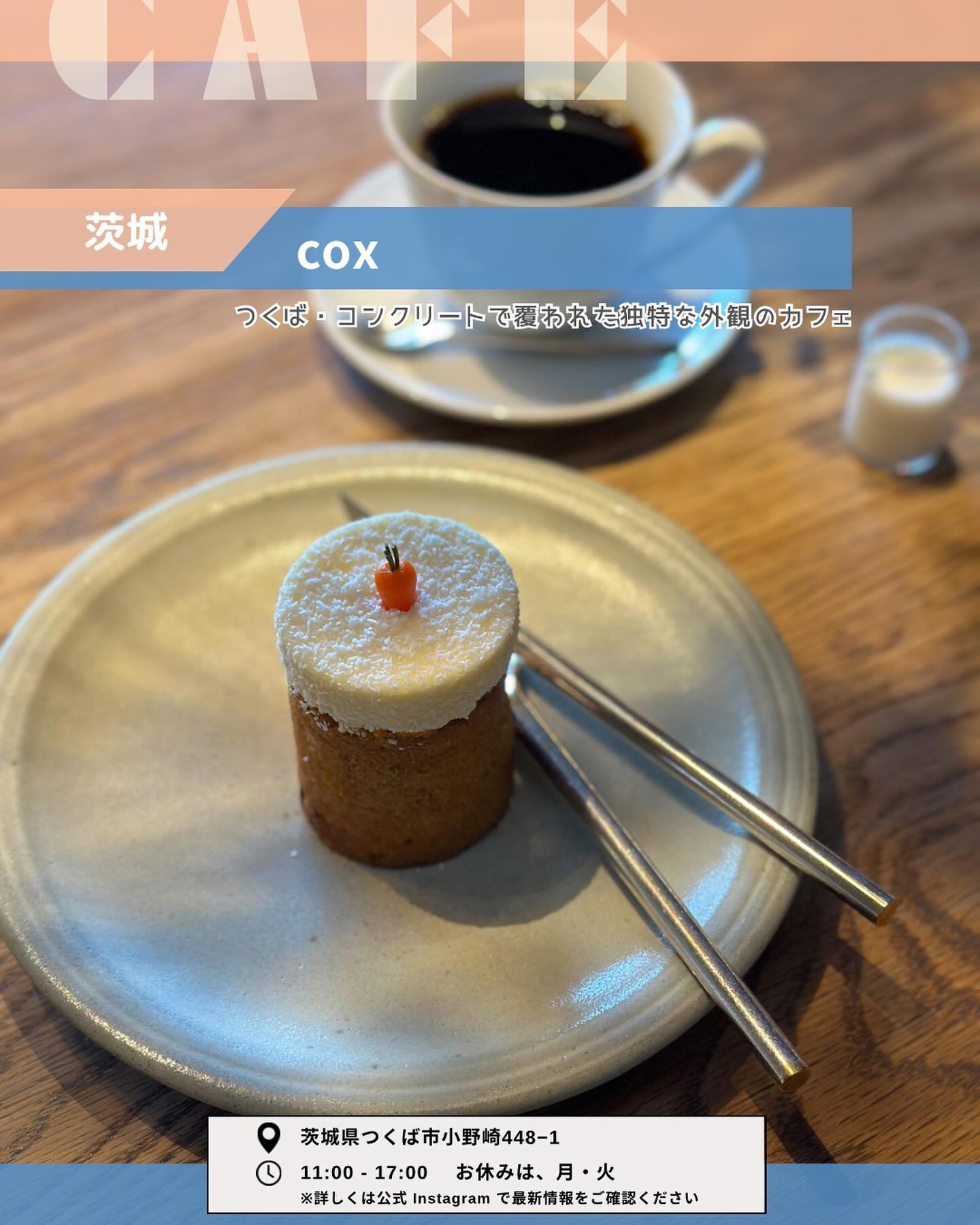つくば市小野崎にあるモダンCAFE。コンクリートの要塞のような外観と半地下風の雰囲気が特徴です。ランチプレート・キッシュプレートと自家焙煎コーヒーを楽しみ、特にキャロットケーキが人気で生地は香ばしくサクサクです。