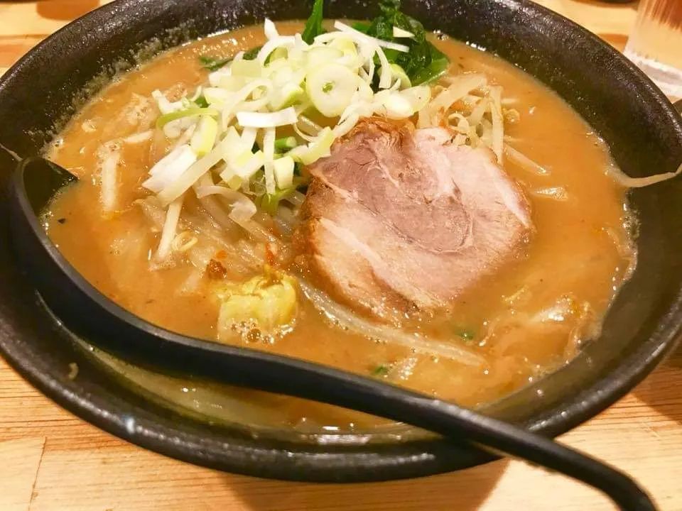 鉄鍋で仕上げる濃厚な豚骨ベースの味噌ラーメン。中太麺とシャキシャキ野菜の食感がアクセントとなり、ニンニクは注文時に選択して入れると格別です。あざみ野駅近くの一杯です。