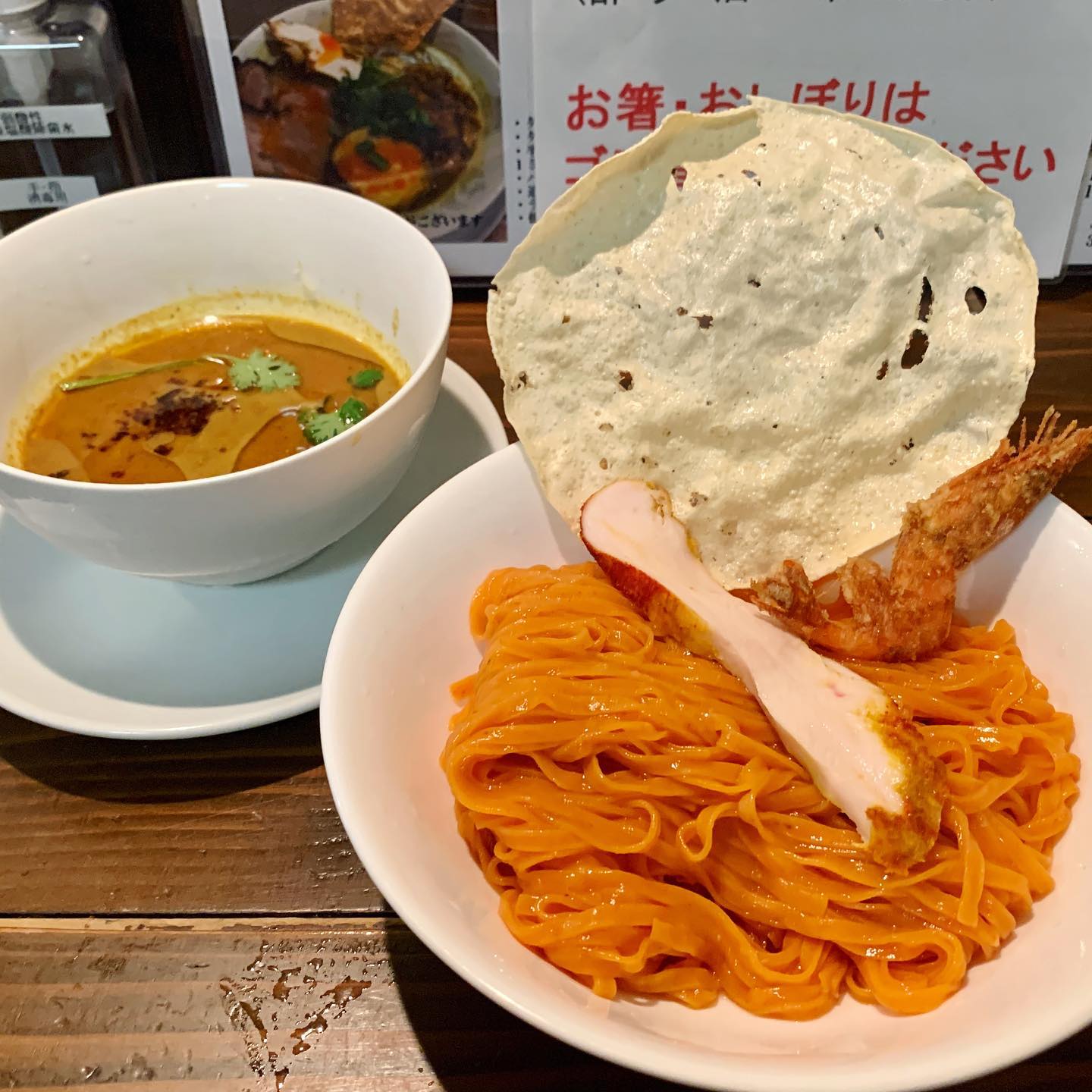 何とえび麺使った冷やしカレーつけ麺、めっちゃ...