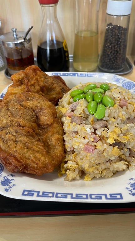高円寺南にある中華料理タカノは、鳥の唐揚げチャーハンが名物です。超巨大な唐揚げ2個とチャーハンが800円とコスパ抜群です。下味がしっかりで揚げ方が絶妙、外はカリッ、中はジューシーです。店内は席数が少なく混雑し、提供にはやや時間を要することがあります。