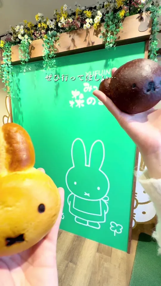 湯布院にあるみっふぃー森のきっちん&べーかりーは、ミッフィー型のパンが楽しめるベーカリーです。二階のカフェにはミッフィーが多数展示され、写真映えスポットも充実しています。隣にはミッフィーグッズのショップがあり、かわいらしい空間です。