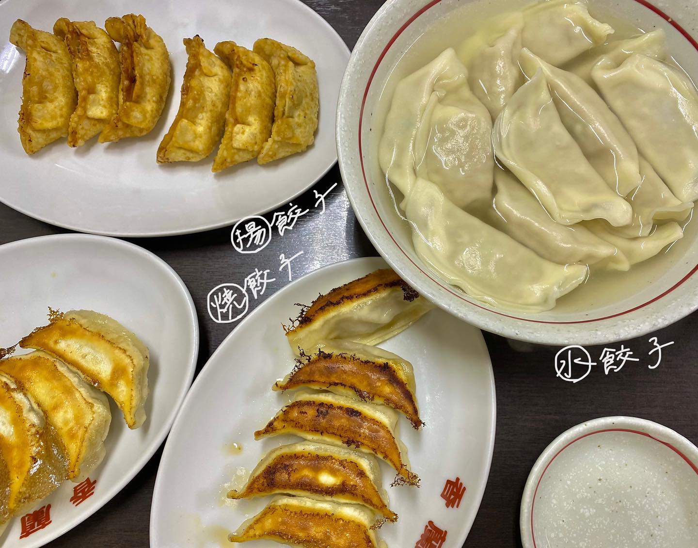餃子は焼き、揚げ、水の3種類🥟見た目の大きさ、焼き上がりはシンプルな昔ながらの感じ😊