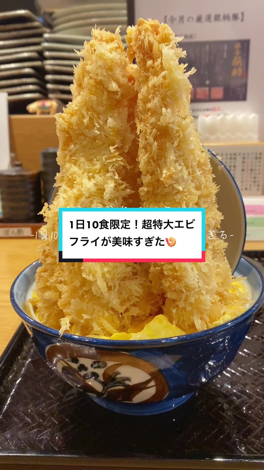 《1日10食限定》直立する海老フライのインパクトがヤバい😂衣はサクサクで海老はプリプリ!大盛り無料なのでガッツリ食べたい時にもおすすめ🔥1日10食限定なので...