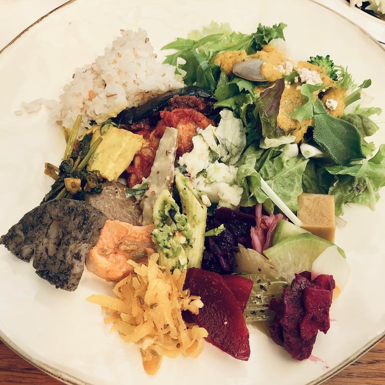 移転後初訪問の世田谷クミンは、日曜の14時半過ぎで満席になるほど人気でした。15種のプレートにタコライスとカレーがあり、野菜が彩られた一皿が印象的です。住宅街の立地ですが駐車場が近く、ビーガン・グルテンフリー対応や玄米麺など健康志向メニューも特徴。今後さらに人気が高まることが期待できます。