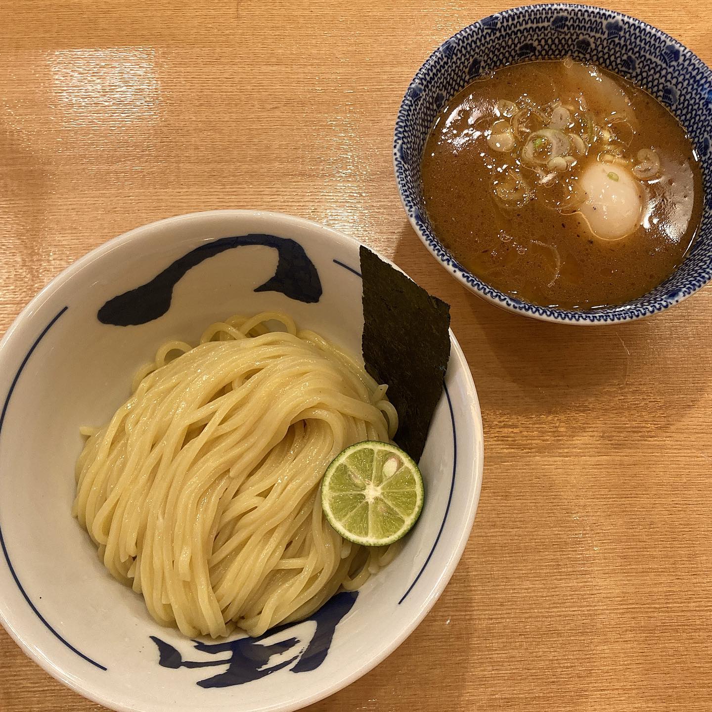 水道橋のつじ田は、濃厚豚骨魚介スープともちもち麺が自慢のつけ麺店。崩し豚のトッピングとすだちで味変できる点が特徴で、辛味が強めなのも印象的です。