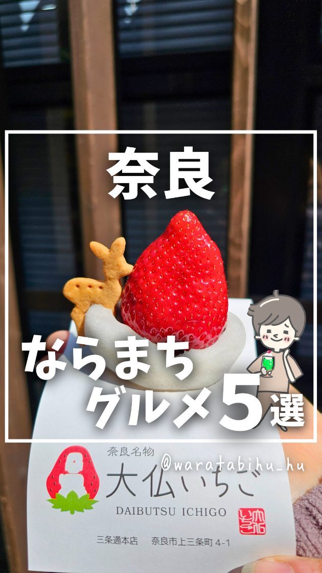奈良の和スイーツをめぐる魅力的なラインアップです。大仏いちごは奈良県産いちご100%ジュースと大福が楽しめ、350円。大仏プリン本舗は東大寺門前の夢風ひろば店でカスタードプリンと大和茶のセットが味わえます。中谷堂のよもぎ餅、もち禅の上品な和菓子、 GRAN CHAの宝石モンブランとドリンクのセットもおすすめです。