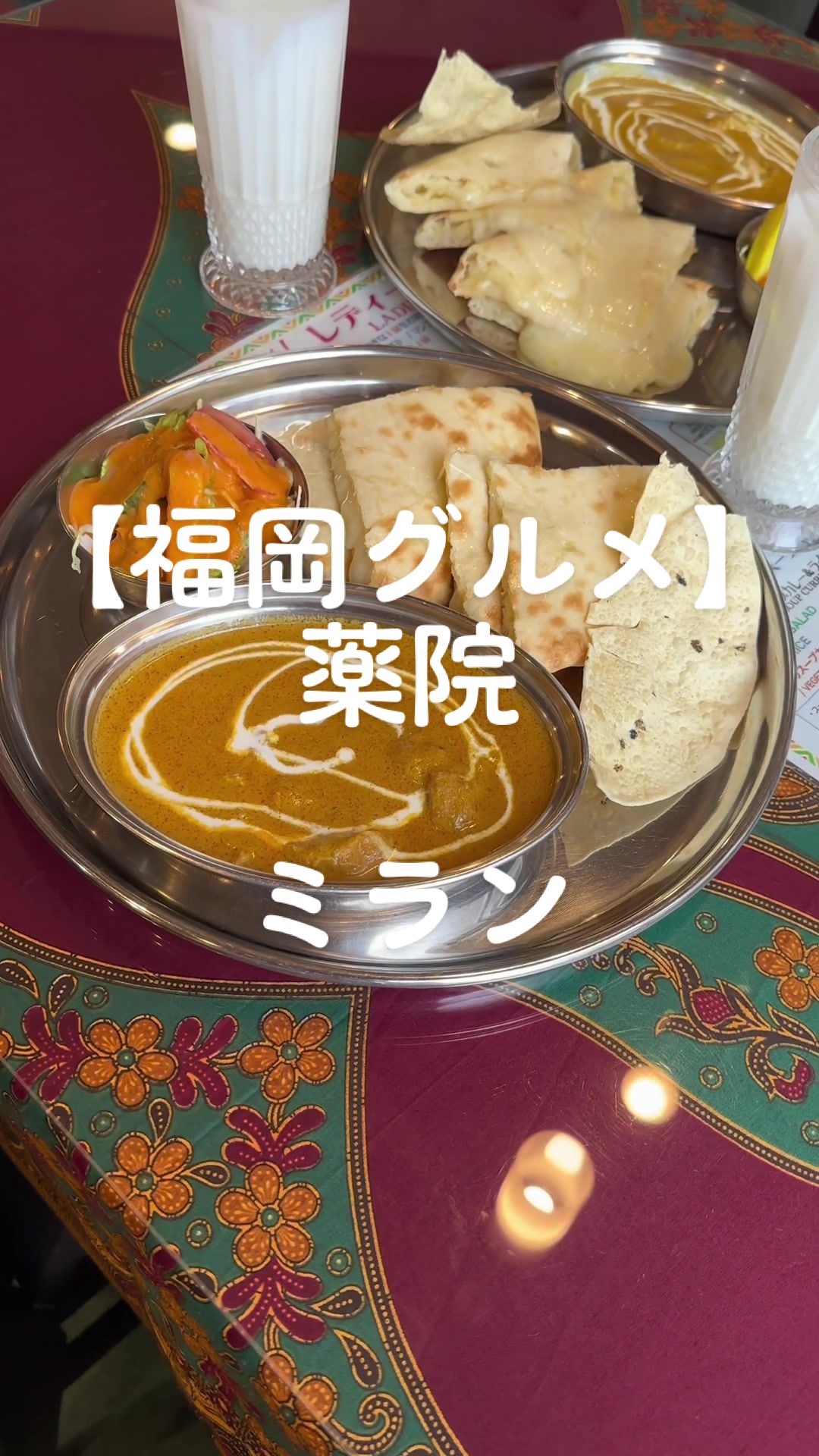 薬院のインド料理店ミランは、0〜50倍まで調整できる本格カレーと窯焼きタンドール料理が自慢です。チキンランチ890円で、ベジ・シュリンプ等4種から選択、ラッシー・サラダ・パーパル付き。ナンはチーズナンへ変更可。2階席があり団体利用にも最適。