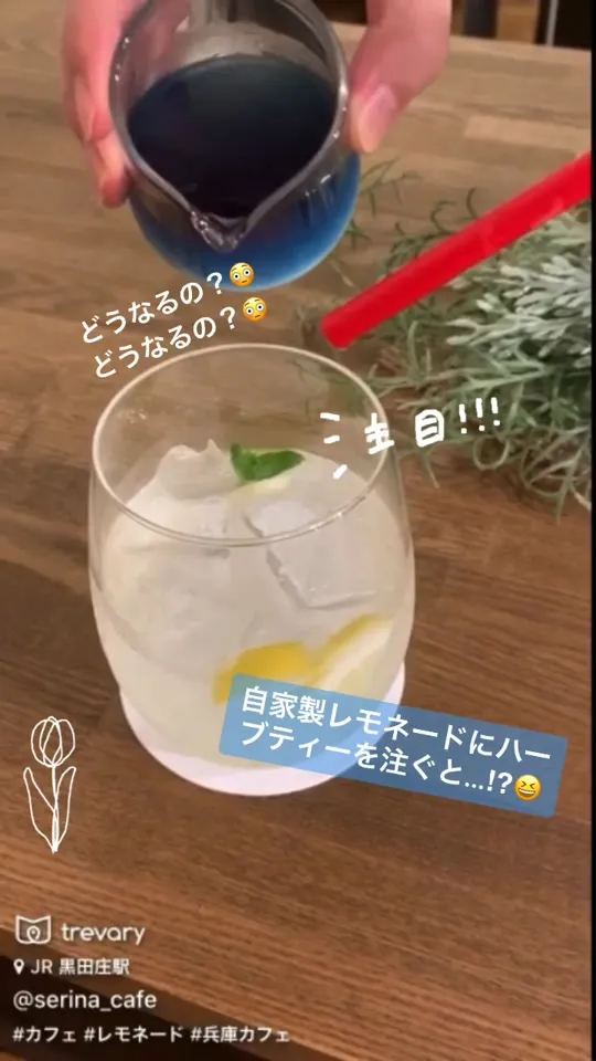 自家製のレモネードに青いハーブティーを注いでいただくこのドリンク♩