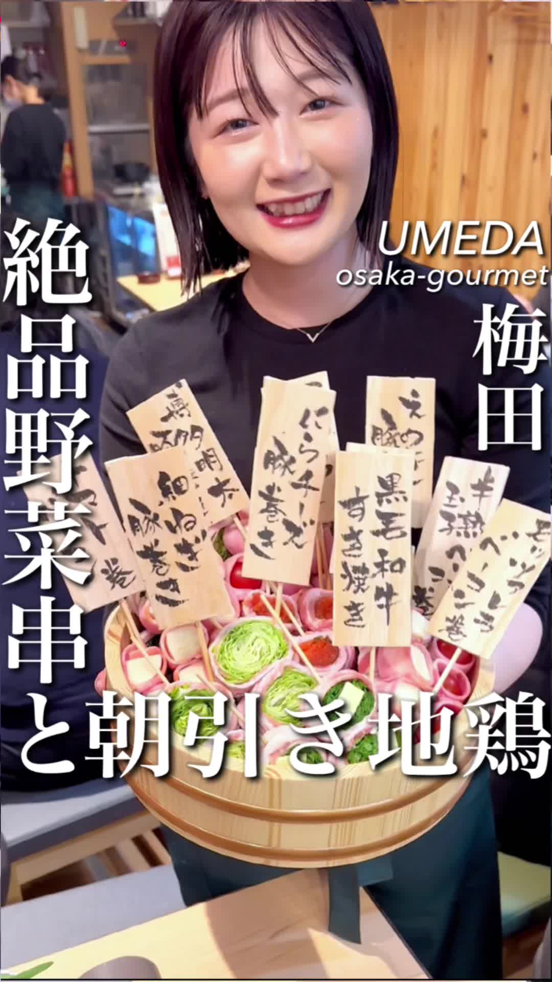 絶品野菜串と新鮮朝引き地鶏が食べれるお店。地鶏、野菜串以外にも、鍋や珍しい釜飯TKGもあるお店は梅田...