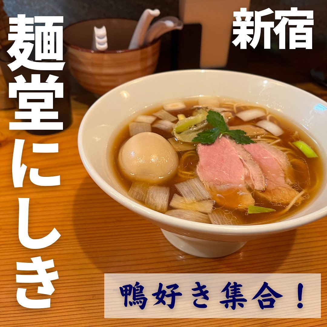 新宿歌舞伎町の創作系ラーメン店、麺堂にしき。鴨だし醤油ラーメンを看板に、昆布水の深い旨味と自家製麺、肉厚チャーシューが特徴です。夜は18:00〜翌13:00まで営業、1Fの九石新歌舞伎町ビルに位置します。