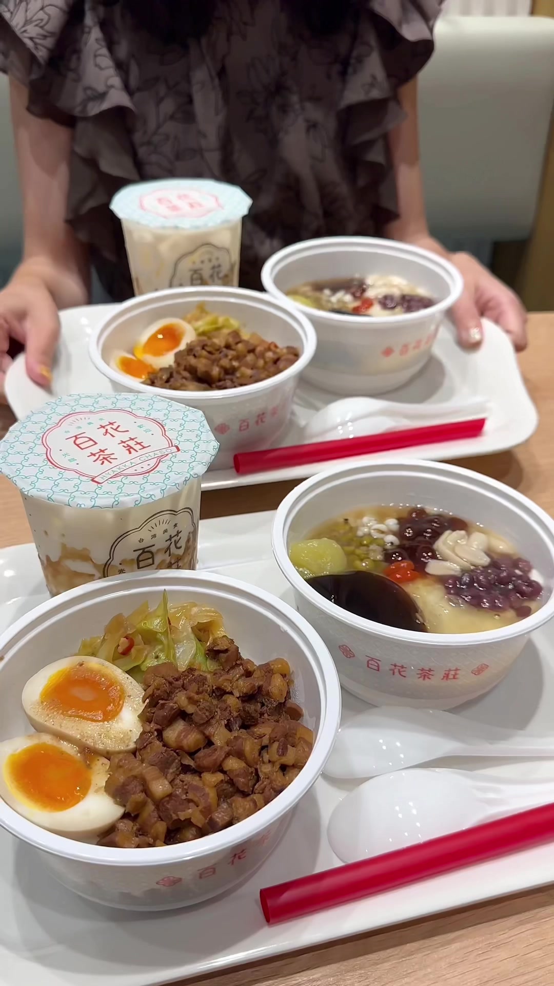 名古屋・大須の百花茶荘では、本場台湾の食材と製法にこだわる料理とスイーツを気軽に楽しめます。自家製タピオカは着色料・保存料不使用。豆花は10種以上のトッピングが魅力で、魯肉飯やタピオカドリンクも本格派。