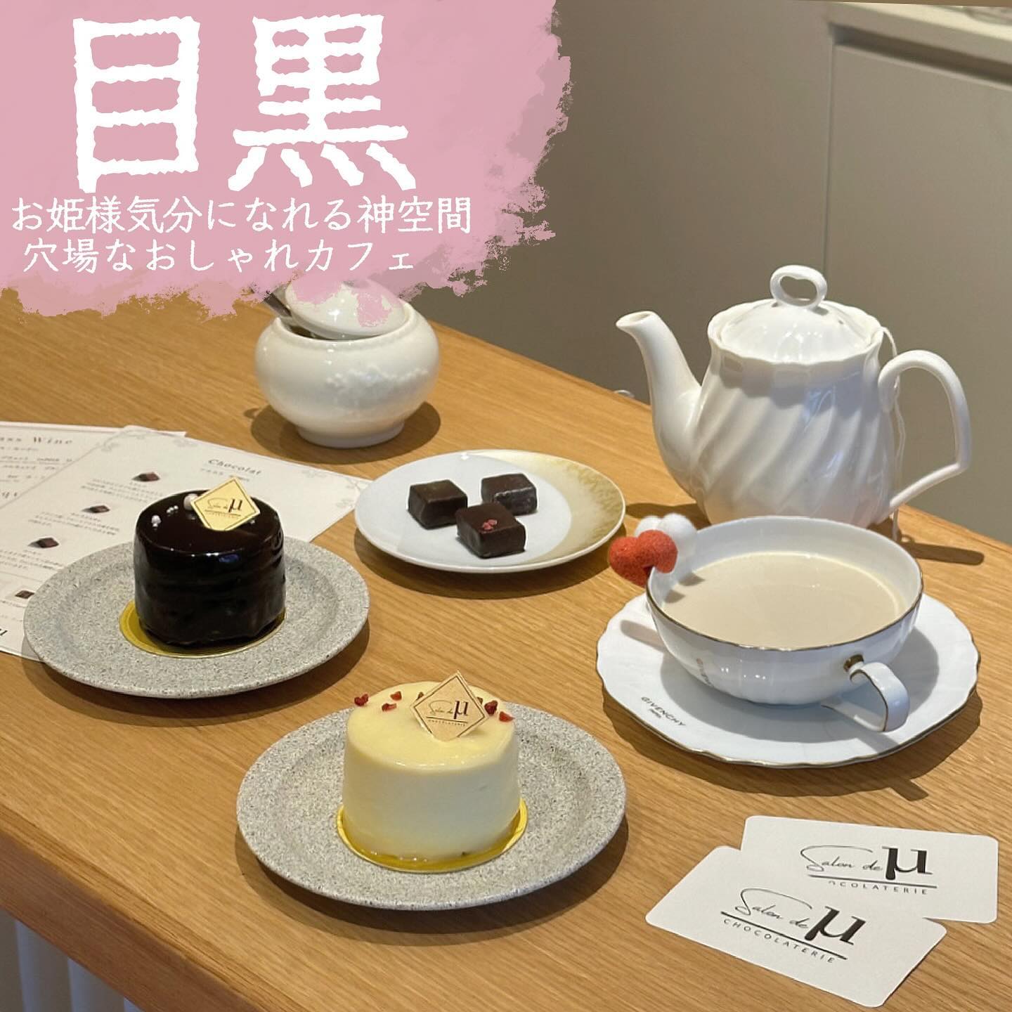白金台のニューオープン、ガーリー系ショコラティエカフェ。白と黒のケーキがとても可愛く、全スイーツがグルテンフリー。店内は空間が非常に可愛く、白金台駅から徒歩3分、13:00~18:00。ショコラ3種・ムース・ミルクティーが人気。