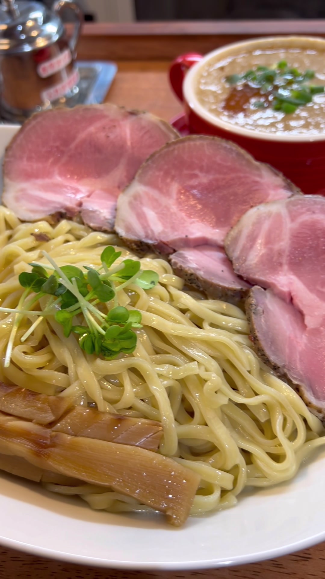 つけ汁も魚介の旨味たっぷりだが、濃すぎずくどくなくて美味しい‼︎