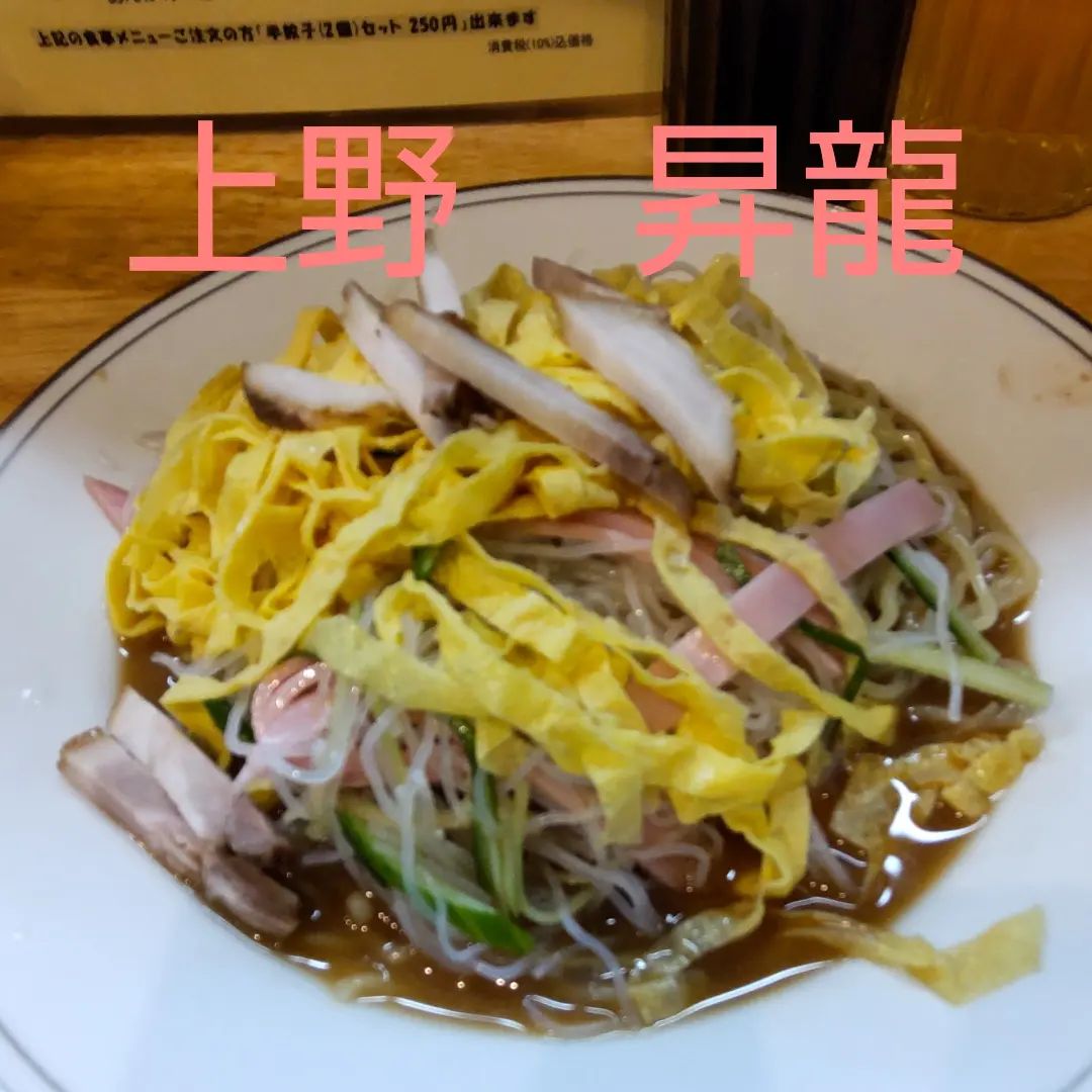 上野・アメ横の老舗町中華「昇龍」は、夏季限定の冷やし中華と看板のジャンボ餃子が名物です。酢醤油ベースのさっぱりタレと皮厚めの餃子で野菜の甘みが際立ち、ボリューム満点。線路下のレトロな雰囲気も魅力です。
