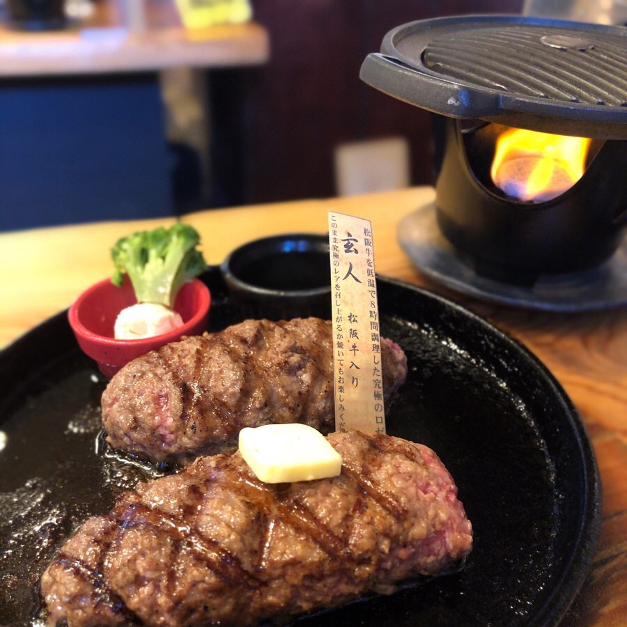 悶絶続出の極限レアハンバーグ。鉄板があるから自分で好きな焼き加減に調整出来るよ!#炭棟梁iori #...