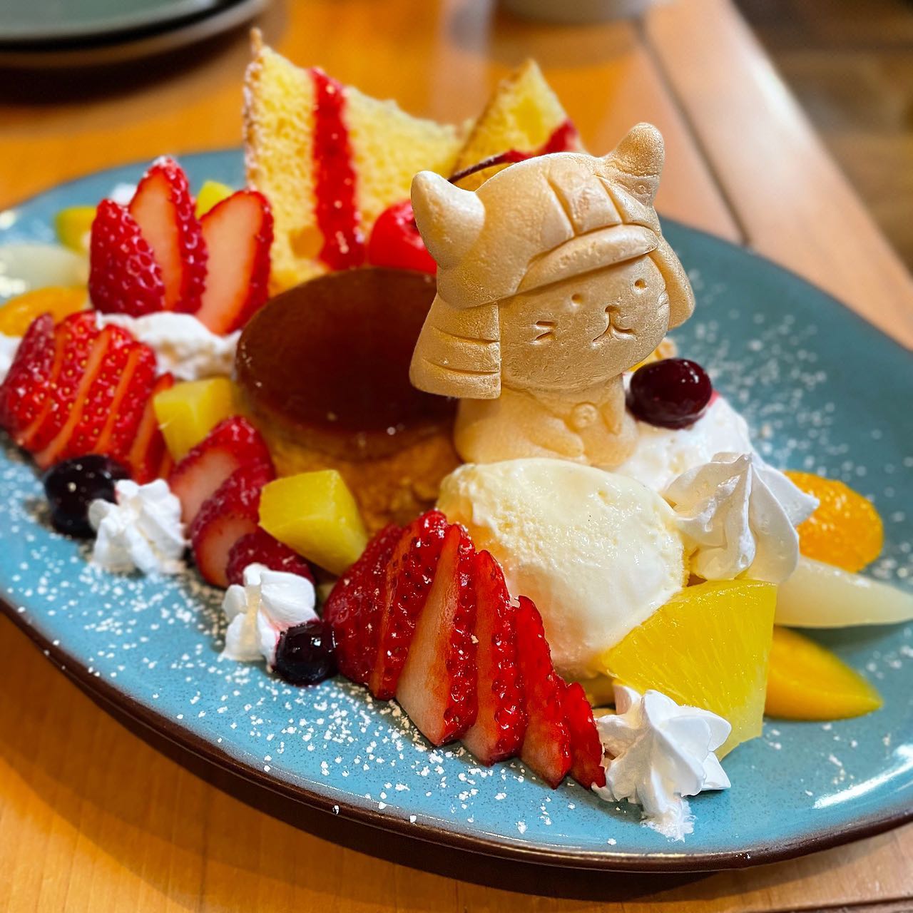 とってもかわいいひこにゃんのもなかがのったプリンアラモード🍮