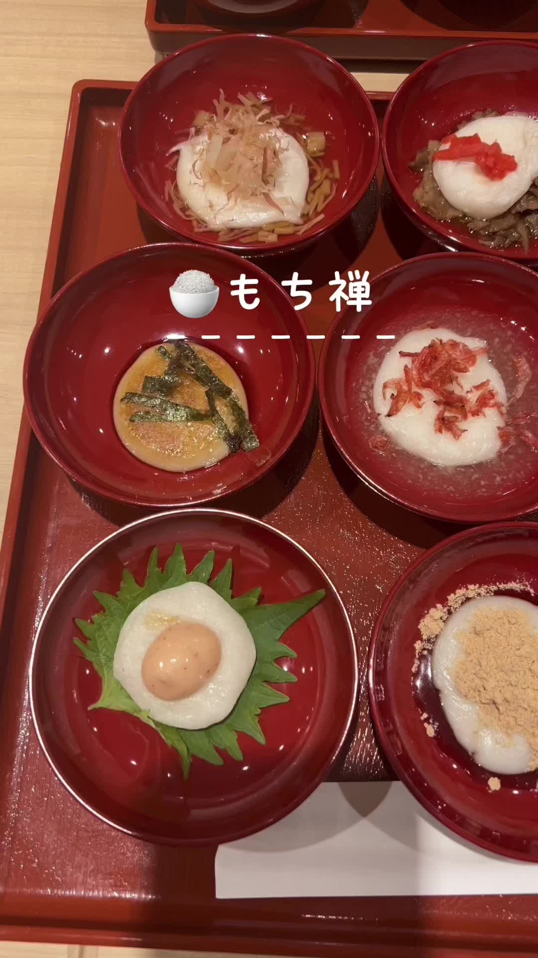 もち禅は奈良市東向南町4の餅専門店。突き立てのお餅9種類を味わえ、甘い系3種とおかず系6種の組み合わせが特におすすめ。近鉄奈良駅から徒歩1分の好立地で、料金は1760円、11:00〜16:00。