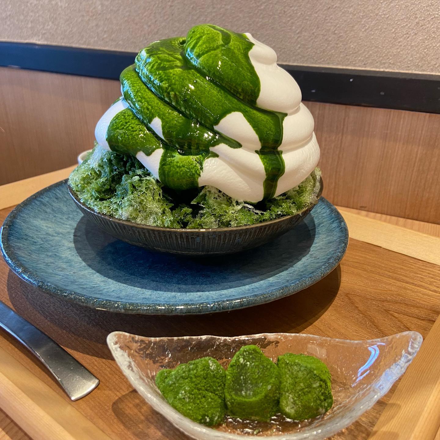 超濃厚抹茶かき氷🍧ふわふわのミルククリームが上にのってて抹茶わらびもちもセットでついてくる #東京グルメ