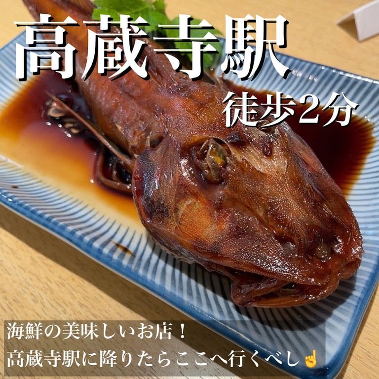 高蔵寺駅徒歩2分の海鮮居酒屋「おっ魚っ魚」です。新鮮な魚介を活かした料理が自慢で、たこぽん・あさりの酒蒸し・ふぐの唐揚げ・かじき串(味噌)などが人気です。ホウボウの煮付けや天ぷらも絶品です。かじき串は1本99円です。15:00〜24:00、定休日は水曜です。