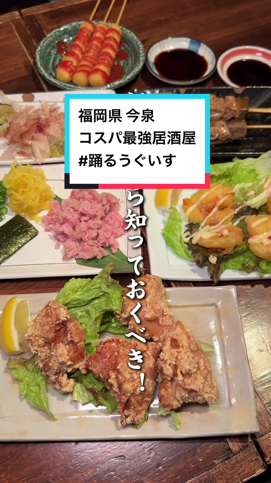 今泉のレトロ居酒屋『踊るうぐいす』です。賑やかな店内はカウンターとテーブル席で、コスパは一品199円〜。看板は牛すじどろ炊きと角の豚串。するめイカ姿造り、セロポン、ハート型トマト薄切りなど個性派つまみも豊富です。セルフのレモンサワーも魅力です。