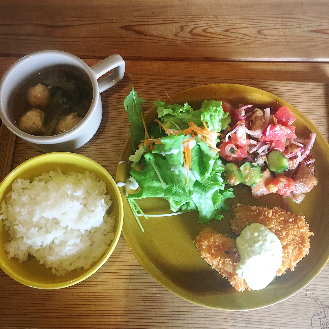 雑貨とカフェが併設されたお店です。ランチはメイン1品にサイド3品を自由に選べ、タッチパネルで注文します。オシャレな雰囲気と美味しさが魅力です。