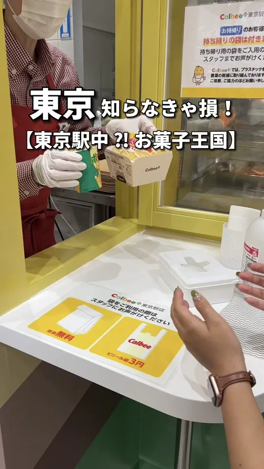 東京駅にある東京おかしランド🍪揚げたてのじゃがりこやハッピーターン、ポテチなど作りたてのお菓子が種...