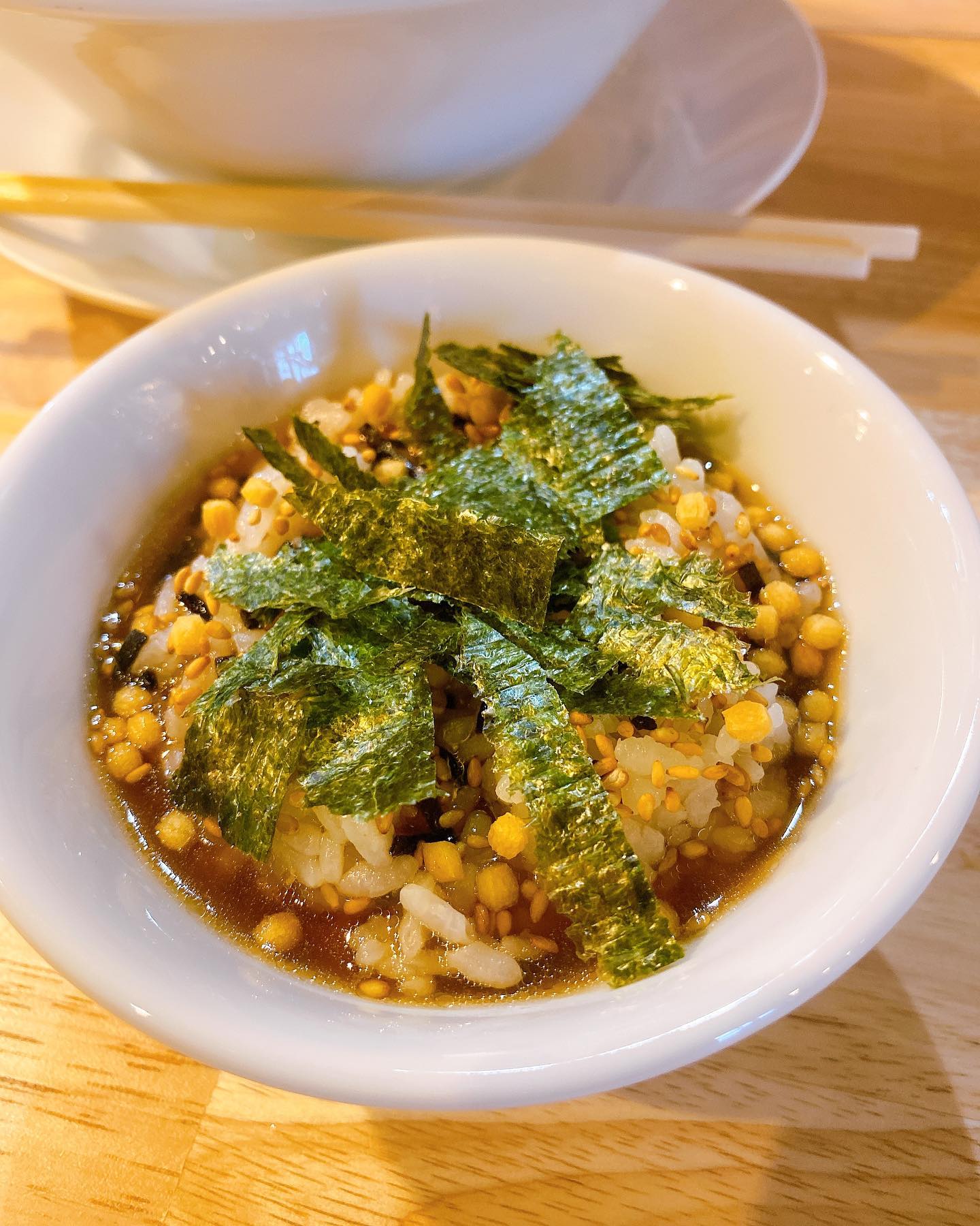 席のとこに書いてあった、ラーメンのスープで作る〆の雑炊風がめちゃくちゃ美味しい(・∀・)