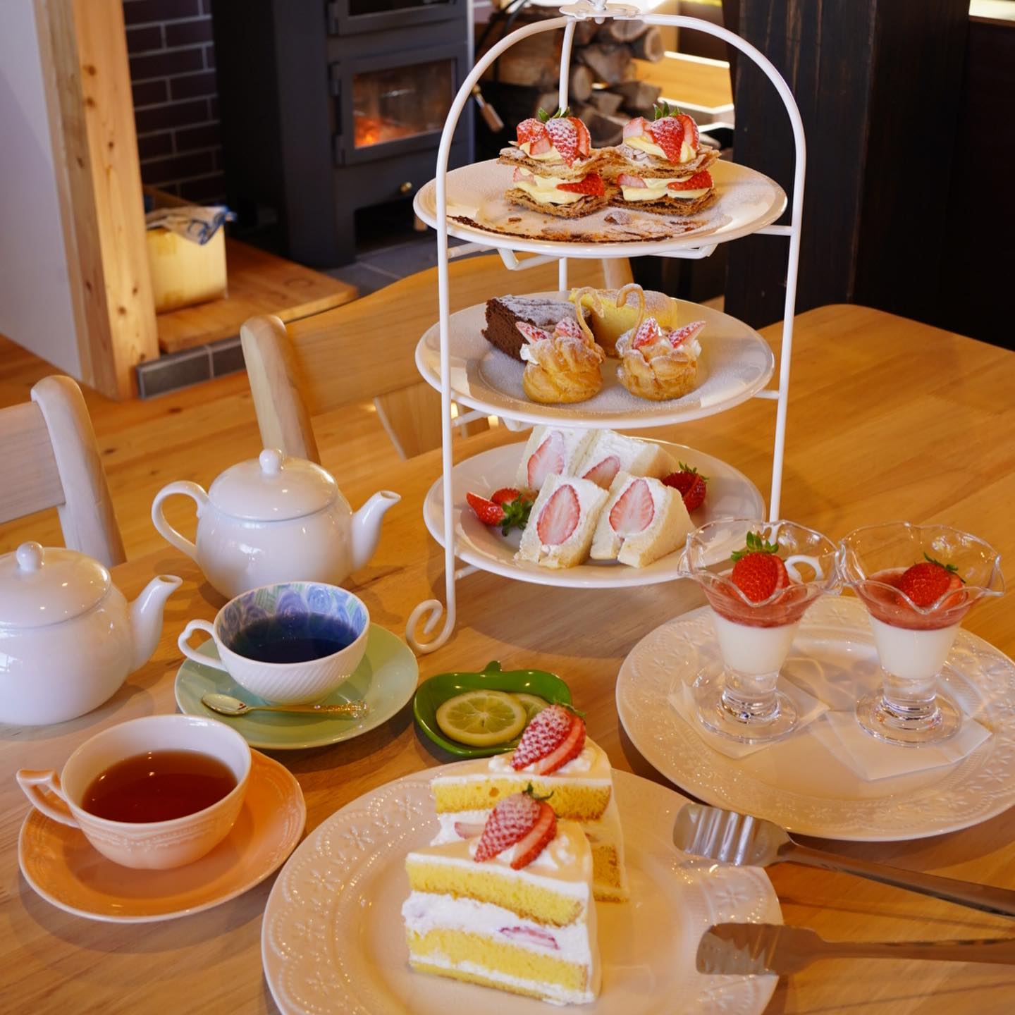 群馬県利根郡昭和村の「るんるんファーム」。昭和村産のやよいひめと恋する果実を使ったPrincess Afternoon Teaが自慢です。苺尽くしのケーキと自家製パンのフルーツサンド、暖炉のある別荘風の一軒家でゆったり過ごせます。