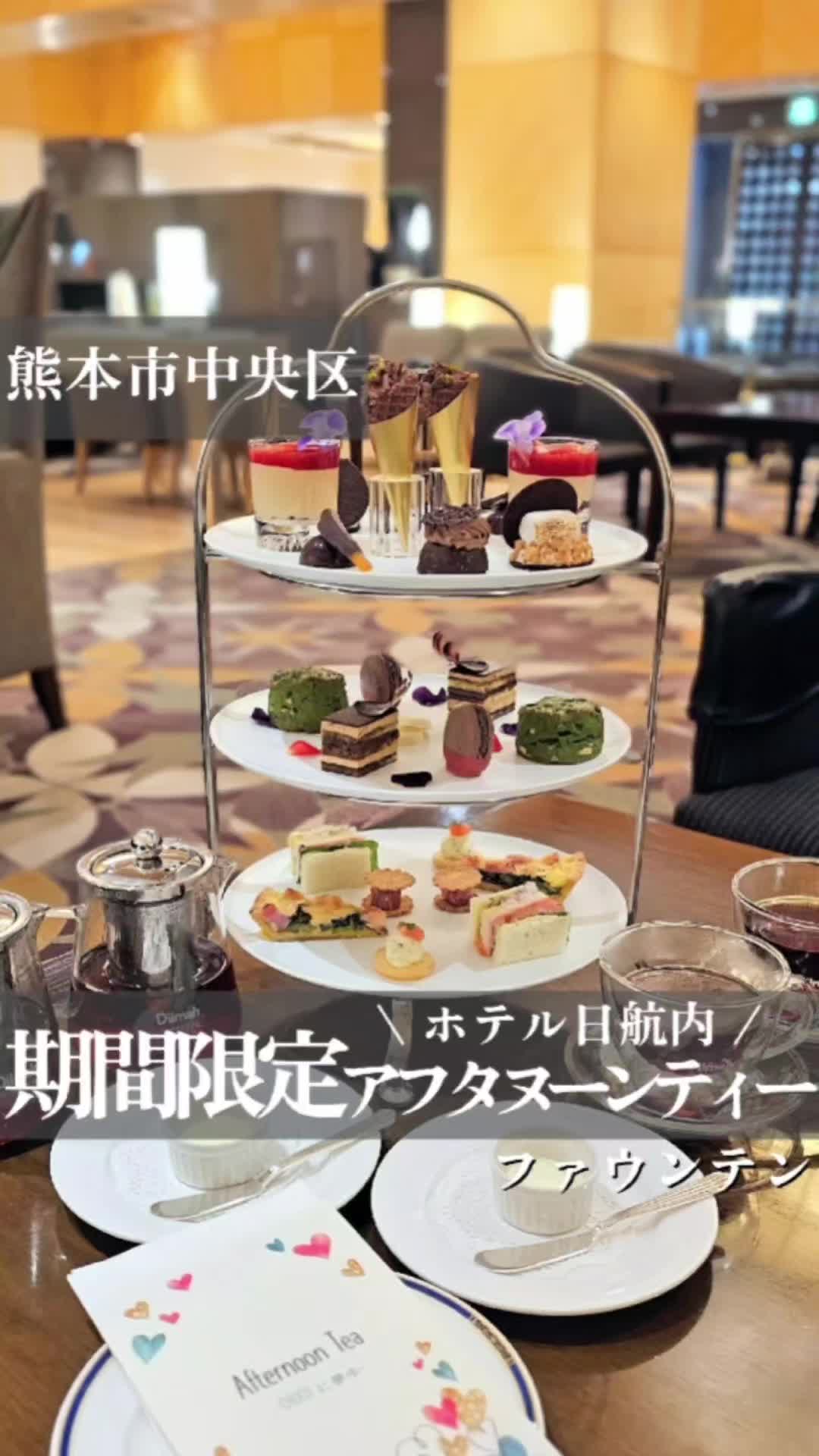 ホテル日航熊本内のファウンテンは、高級ラウンジで期間限定のアフタヌーンティーを完全予約制で提供します。14種類の手の込んだスイーツはフランス産チョコを使用し、甘すぎず大人向けです。紅茶は10種以上から選べ、料金はお一人4,200円です。