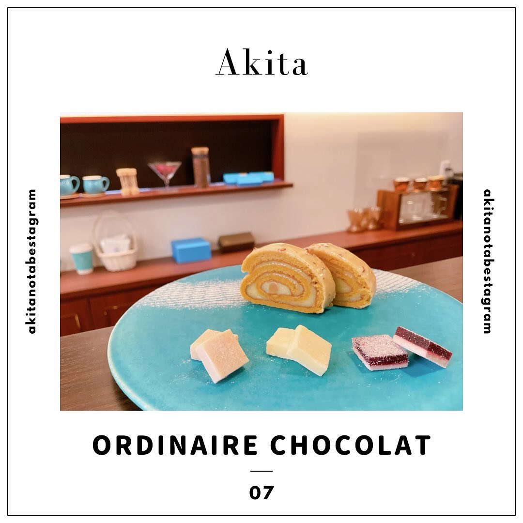 秋田のチョコレート専門店です。ムチッとした生地のショコラロールと生ショコラ(いちご・ホワイト・さくら)が特徴。高級感あるイートイン空間とブルーの器、ロゴに隠れたAKITAがユニークです。週末はカフェメニューも楽しめます。
