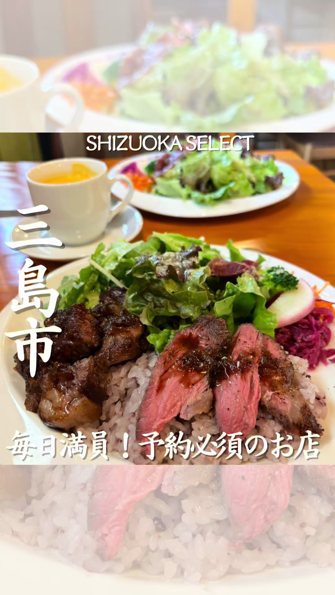 静岡県三島市のグリーンルームは、数量限定の牛イチボローストビーフプレートが看板メニュー。毎朝焼き上げたローストビーフが6枚盛られ、噛むほど旨みが広がります。11:30〜14:00、日月休。広小路駅から徒歩5分の好立地。