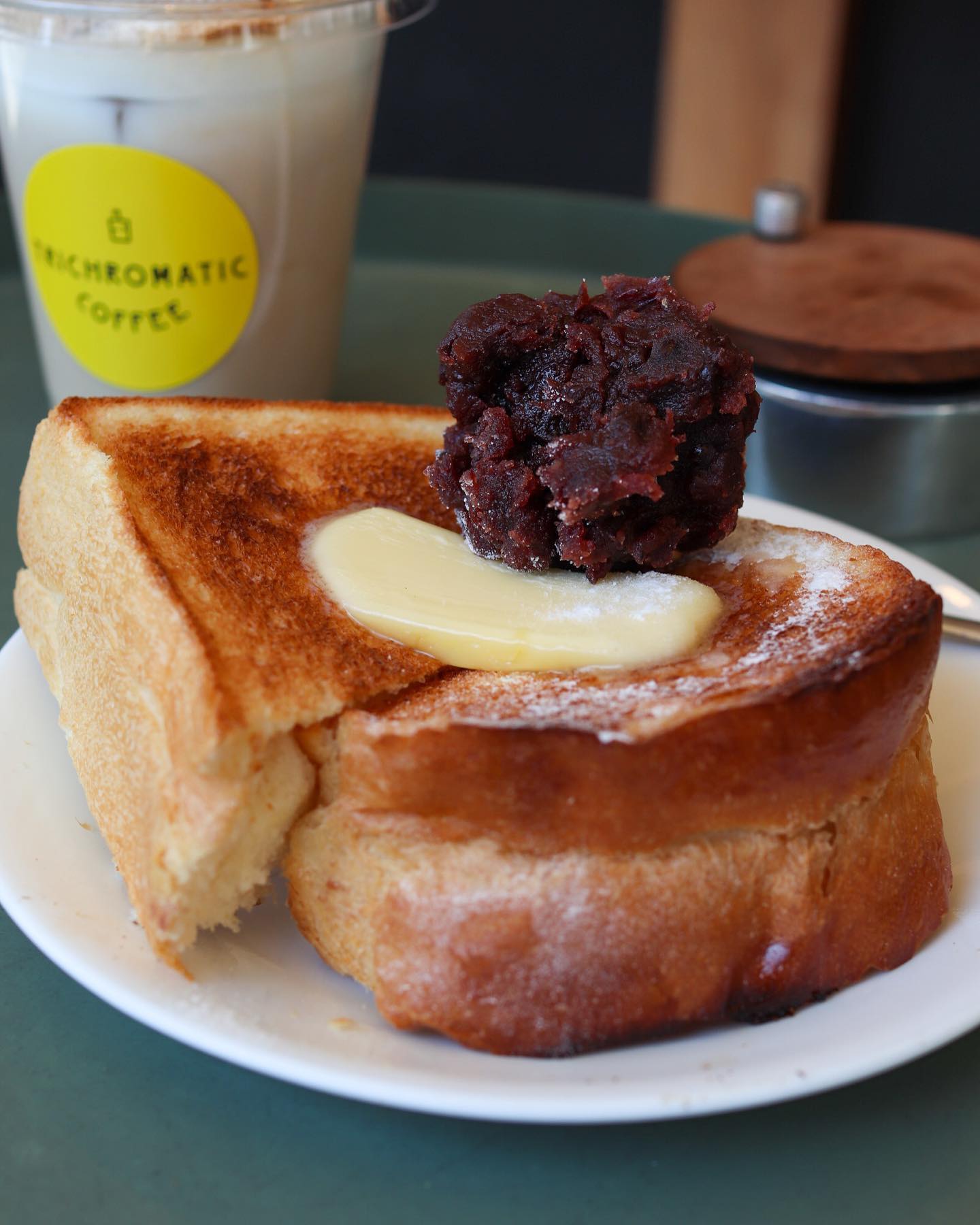 【トリクロマティックコーヒー】さんにて「厚切りバタートースト」(ハチミツorジャム)。