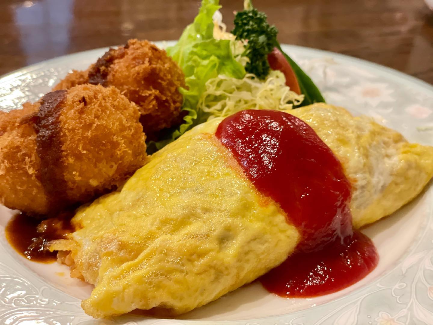 祖師ヶ谷大蔵駅近くの洋食店です。昔ながらの薄い卵オムライスとサクサクのクリームコロッケのセットが魅力です。ケチャップライスは濃いめです。付け合わせはキャベツ・きゅうり・りんご・スープで満足感があります。お一人様約1500円、予約が可能です。